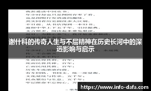 谢什科的传奇人生与不屈精神在历史长河中的深远影响与启示